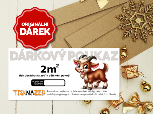 Za tento dárkový poukaz Vám vytiskneme jakoukoliv grafiku o velikosti 2,5 m² do dětského pokoje.